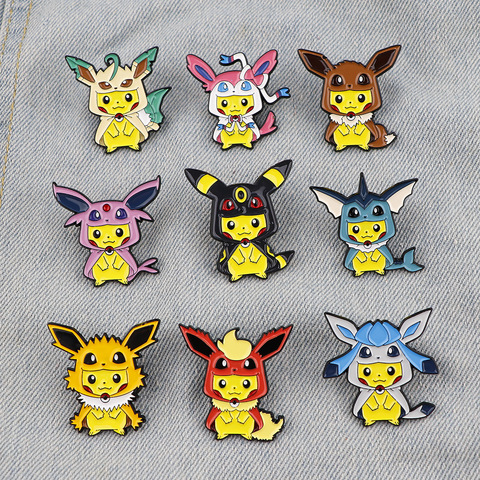 Pikacu de 9 colores en estilo Cosplay, alfileres de insignia de Metal esmaltados pintados para decoración de tela de mochila